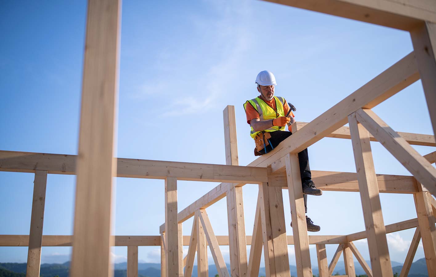 Holzkonstruktion - Baustelle eines Holzhauses